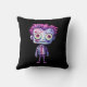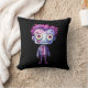 Una almohada con un lindo ilustracion. Monstruo Frankenstein con pelo rosado y púrpura y traje y corbata de dapper.