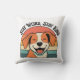 A playful square pillow showcasing a retro dog spreading positive and quirky vibes.