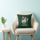 A funny snowman cartoon on a Christmas themed pillow or cushion. Use "Personalize this template" to change the "Merry Christmas!" text and create a unique, customized item; text changes are reflected on both sides. Decorate your house this Christmas with a pillow featuring an excited snowman dressed up as Santa Claus, jumping out of a Christmas present like a jack-in-the-box. The box is wrapped in gold paisley wrapping paper and a green ribbon with white snowflakes.