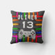 Gamer Video Game Controller Neon Birthday Throw Pillow. Gaming controller on a vivid colorful neon lights on a grey background. Add your name and age.
