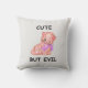 Tira una almohada con un gato que puede ser visto como adorable y un poco "malvado". Aunque el ilustracion es principalmente dulce y caprichoso, fácilmente podría ser enmarcado como "engañosamente inocente" — el tipo de arte que juega con la idea de que los gatos son partes iguales adorables y diabólicos.