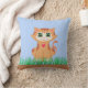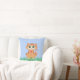 Gato atigrado naranja lindo y planta de hierba en cojín azul claro.