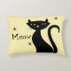Pillow con un gato negro de los años 50 con estrellas negras de fondo amarillo.