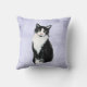 Cojín Decorativo Gato negro y blanco de la acuarela del smoking