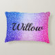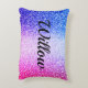 Gimnasia chica, Caballos, Almohada de Acento Personalizada Purpurina. Totalmente diseñado en ambos lados. Sorprendente y colorido fondo digital purpurinoso con el nombre de su hijo en la parte de atrás, en el frente dice: ¡Todo lo que necesito son GIMNASTICS, CABALLOS y PURPURINA! También en las esquinas opuestas delanteras hay dos siluetas de gimnasia, una de ellas haciendo un movimiento de rutina en el suelo y la otra en una bóveda. En las esquinas opuestas hay caballos negros criando.