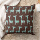 almohada de 20" x 20" con una imagen de adorables jirafas azules y marrones en marrón. Marrón atrás. Vea toda la colección de almohadas de Safari en el DECOR | Sección de almohadas.