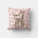 Girafa rosa y marrón y diseño de almohadas de impresión manchadas con nombre personalizado o monograma como prefiera.