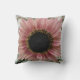 Esta impresionante almohada muestra una hermosa fotografía de un girasol rosa pálido. El girasol es de color rosa natural y los pétalos tienen un anillo exterior rosa pálido y un anillo interior rosado más oscuro. El medio donde están las semillas es negro. Esta fotografía fue tomada en un jardín.