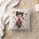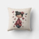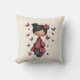 A pillow with an image of a young girl holding a butterfly wand. An adorable unique retro style doll with rosy cheeks. Butterflies flying all around. Sweet and cute.