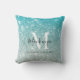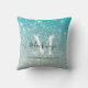 Girly Aqua Blue Silver Ombre Purpurina Monograma Cojín decorativo de nombre