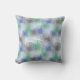Esta almohada de tiro tiene un diseño moderno de mediados de siglo de starburst en glaucous (azul), gris, azul claro y verde.
