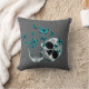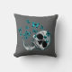 Gothic Skull and Blue Butterflies Grey and Black Throw Pillow.