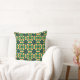 A Green, Blue, Orange And Black Colored Tiled Pattern Throw Pillow