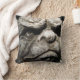 Deja que la gárgola proteja tu sofá. Cara gruesa de gárgola sobre una almohada monocromática.