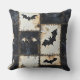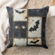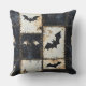 El estampado de denim Halloween angustiado arroja almohada con murciélagos, cráneos y diseños de corazón oscuro en una rejilla negra y crema. Estética gótica, grunge y espeluznante, ideal para una decoración espeluznante, regalos alternativos y estilo de fiesta de Halloween.