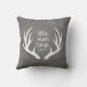 ¡A tu pequeño le encantará esta divertida almohada! Este diseño presenta un fondo de textura gris, cuernos y tipografía personalizada. Agrega la fecha de nacimiento de tu hijo para completar la apariencia.