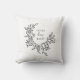 Esta almohada de boda romántica presenta una hermosa corona botánica ilustrada con nombres personalizados y letras de guion de amor de moda. Este hermoso diseño en blanco y negro es un regalo perfecto para una novia o novia. Visite esta tienda para encontrar decoraciones para el hogar y regalos elegantes coordinados.