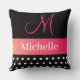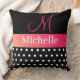 Cojín Decorativo Guión de monograma rosa blanco negro con puntos de