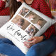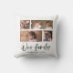 Almohada con las palabras "Nuestra Familia" en una elegante letra cursiva con 4 fotos dispuestas una al lado de la otra en la parte delantera y trasera, lo que hace un total de 8 fotos que puedes reemplazar con tus propias fotos sobre un fondo blanco. También puedes agregar el nombre de tu familia y el año de fundación. Perfecta para decorar el hogar, recién casados, recuerdos familiares, etc.