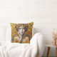 This throw pillow has a beautiful seated woman in an Art Nouveau, Gustav Klimt style image of rich golden yellow. Elegant, organic, and beautifully detailed — a masterpiece that elevates everyday life.