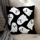 Celebra Halloween con estilo con esta almohada tierna que presenta un patrón de fantasmas voladores espeluznantes. Diseño bilateral en blanco, negro, gris carbón y gris claro.