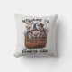 Vintage Halloween acechó a los animales de granja Halloween lanzar almohada. Ideal para una fiesta de Halloween en una granja de campo. Bienvenidos a la encantada granja. Vaca, cabra, cerdos, calabazas.