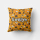 Añada un toque festivo a su casa con esta almohada personalizada de Halloween que presenta un divertido patrón espeluznante de gatos negros, gorras de brujas, cráneos, dulces y lunas. Personalizar con tu nombre (ejemplo: Evelyn) para una decoración única y divertida. Perfecto como regalo de Halloween, decoración de temporada en casa o almohada de acento acogedor.