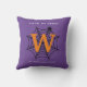 Halloween Spider Web Trick o Treat Monograma Cojín decorativo con fondo morado y naranja inicial. ¡Feliz Halloween! Celebra la noche más aterradora del año con este diseño inicial de telaraña, araña y monograma en negro, blanco y naranja. Con el texto "Truco o trato" que se puede cambiar a la cita deseada. Texto listo para el personalizar con su nombre e Inicial.