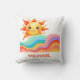 Brighten up any nursery with this cheerful and vibrant summer-themed baby pillow. The design features a friendly smiling sun rising over a series of colorful, flowing rainbow waves against a soft blue background. This cozy accessory is an ideal addition to a modern boho nursery or a thoughtful gift for a toddler's birthday.