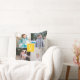 Haz tu propio collage de fotos y Cojín decorativo personalizado de monograma. Esta almohada moderna muestra un collage de cuatro fotos familiares y tu monograma en la parte delantera y cuatro fotos diferentes en la parte posterior. En el centro hay un marco amarillo con su monograma. ¡Sólo cambia imágenes y monogramas para crear los suyos! Fotografía © Storytree Studios, Stanford, CA