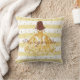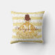 Una simple almohada monograma con franjas acuáticas amarillas, un purpurina dorado brillante y una hermosa princesa que nos recuerda a un cuento de hadas.