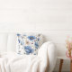Flores de acuarela en azul polvoriento con hojas, sobre fondo blanco