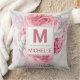 Cojín Decorativo Hermoso Monograma de flores rosadas, blancas y pla