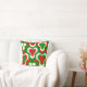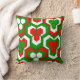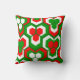 Esta almohada de tiro tiene un diseño geométrico Navidad de hexágonos en conjuntos de tres que parecen flores en rojo, blanco y verde.