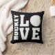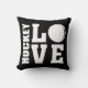 El cojín de los jugadores de hockey Black HOCKEY LOVE. ¡A los jugadores de hockey les encantará este cómodo cojín de hockey! Este cojín de hockey tiene un tema de amor con las palabras HOCKEY y LOVE en letras en negrita. Una pelota de hockey sirve para la letra O, lo que le da a este diseño un verdadero tema de hockey. En la parte trasera de este cojín está el mismo diseño de Hockey Love pero impreso como una fantástica impresión con motivos por todas partes. Este cómodo cojín se ve genial en cualquier silla y mostrará a todos los que tengan un amor apasionado por el hockey. Más diversión en los regalos temáticos de hockey y mercadería disponibles en la tienda STAND UP AND CHEER!