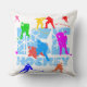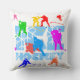 Los copos de nieve adornaron el texto de hockey sobre hielo de color azul e imágenes coloridas de silueta de jugadores de hockey. Graciosa, elegante, única a través de la almohada para cualquiera. ¡Juega al hockey, diviértete y sé feliz!