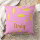 Cojín Decorativo Hojas secas amarillas nombre personalizado rosa