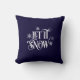 This holiday throw pillow is shown with a let it snow snowflakes print.