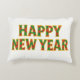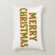 Fun festive holiday accent pillow. Merry Christmas on one side and Happy New Year on the other. Red and green letters outlined in gold. Decorate your family room or bedroom with a cozy comfy greeting on a sofa, bed or chair with this seasonal pillow.