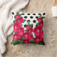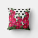 Tire la almohada con la imagen de hollyhocks de color vino sobre un fondo de puntos de polka negros y blancos.
