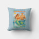 “Hooked Up” blends classic pin-up charm with coastal fishing humor. Featuring a rugged fisherman and flirty mermaid in a playful offshore fantasy scene, where she grabs the hook and flicks her jewel green tail. Sun soaked vintage colors, old-school poster style, and just the right amount of sass make this sky blue throw pillow a fun way to bring to ocean energy into your nautical home decor. | The matching throw blanket is available in my store.