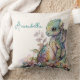 Esta mágica y encantadora almohada de tiro personalizado presenta un colorido tema de cuento de hadas. Un huevo de dragón de color arcoiris está impreso en el centro con un lindo dragón de bebé parado al lado. Un jardín de flores y una mariposa se siembran debajo del huevo.