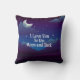 I love you to the moon and back, blue-indigo landscape with white crescent moon.