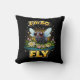A cheerful cartoon fly with oversized red eyes stands proudly on a lily pad beneath a sparkling night sky, celebrating humor, confidence, and playful charm.
