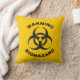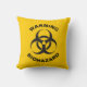 Icono de advertencia de riesgo biológico sobre fondo amarillo. Texto personalizado. Fondo de patrón sin inconvenientes en la parte trasera.