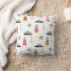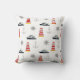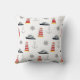Iconos náuticos, faro, ancla gris plateada y rueda de barco sobre Cojín decorativo blanco.