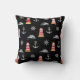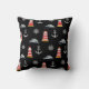 Iconos náuticos, faro, ancla gris plateada y rueda de barco en Cojín decorativo negro.