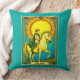 Pillow en un ilustracion de la carta del tarot, "El Sol", que representa un sol radiante que domina el cielo, sus rayos dorados que rodean a un niño montando un caballo blanco. Simboliza la inocencia y la vitalidad, mientras el vívido fondo azul irradia alegría y claridad.