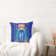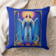 Almohada en la carta de tarot "La Reina de las Maravillas". Permaneciendo a regañadientes con túnicas azules, radiante bajo un halo dorado, sostiene una varita, que simboliza el poder y la creatividad. Rodeada de ramas y estrellas feroces, exuda confianza, calidez y fuerza espiritual