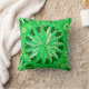 Tirar almohada en una moderna impresión tribal/étnica de ruedas de mandala anidada y triángulos, con un toque tropical - tonos de verde cal y verde esmeralda oscuro, acentuados con crema